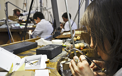 Au programme : sculpture en cire, mise en forme du métal (perçage, sciage, fraisage, tout ce qu’il faut pour faire un chef-d`œuvre), brasage, forgeage, embouti, placement de pierres… et le polissage final pour que ça brille de mille feux !